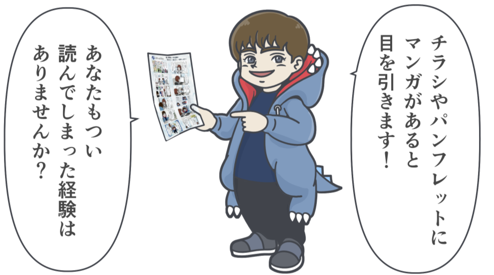 チラシやウェブサイトに漫画があるだけで、思わず目を引かれ、サービス内容への理解や共感が深まります。